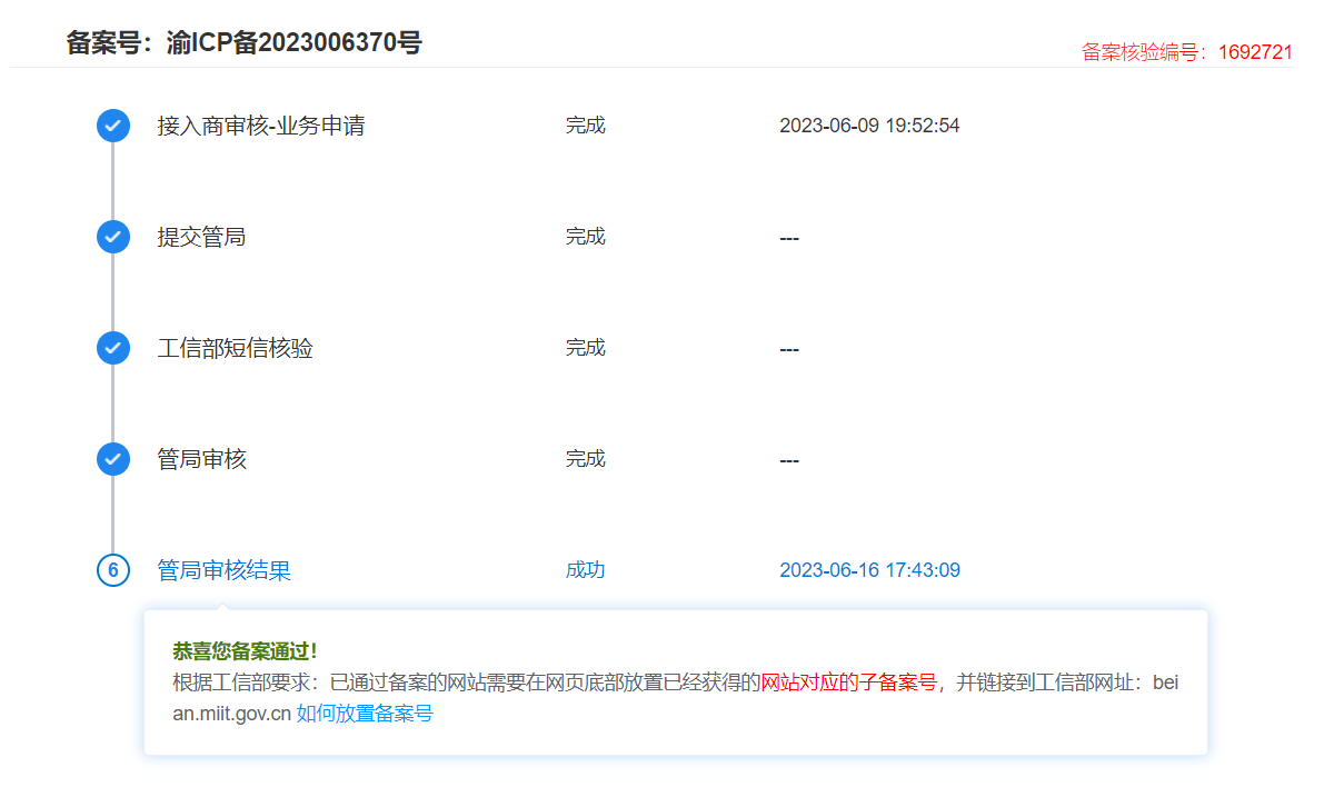 这备案还挺快,赶着周末下班前通过了 2023-06-16•杂谈 122 2 上周五七点过下班后提交的,电话都没打一个,到这周五就通过了,算上周末刚好一周,下面是详细时间 赞(0) 分享 最后更新 2023-09-16